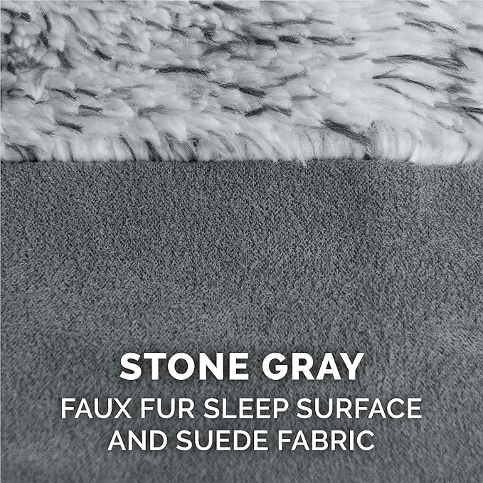 - SLEEP SURFACE: The main sleep surface is lined with cuddly soft, plush faux fur, while the supportive bolsters are wrapped in easy-care suede; both materials are gentle on noses and paws for enhanced snuggling and burrowing comfort