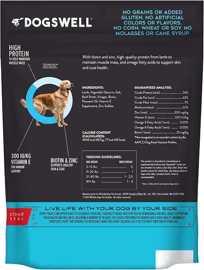 Dogswell Skin & Coat Jerky Dog Treats, Lamb, 10 oz. Bag