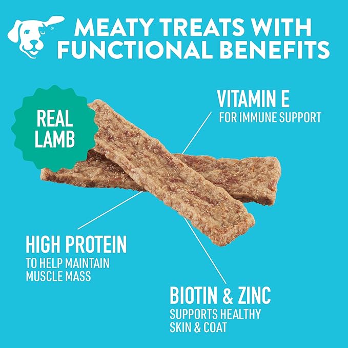- HIGH PROTEIN JERKY This functional jerky is made with high-quality protein from lamb as the first ingredient. Coming in at 26% protein, these jerky treats help to support lean muscle mass and provide energy.