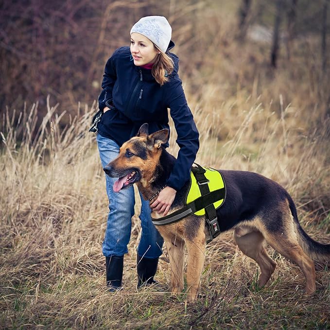 Dogline Dog Harness, Reflective No-Pull Adjustable Vest with Handle for Walking, Training, Breathable, No - Choke Harness for Small, Medium or Large Dogs Room for Patches Girth 27 to 34 in Lime Green