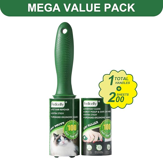 - MEGA VALUE SET 200 SHEETS: This pet lint roller come with 1 upgraded ergonomic handles and 2 lint roller refills, each lint roller refill has 100 Sheets, which is 1.5-2 times that of other similar products, that means youโll have a total of 200 sticky sheets in stock. Such economical value pack can be long lasting to meet your everyday clean needs. Better quality, higher cost performance.