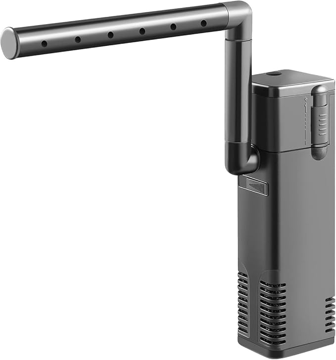 - [Multifunctional Fish Filter] The fish tank filter has two different outlets, a spray bar and an aeration outlet. The spray pipe can allow water to flow out like a waterfall, which has a good filtering effect and allows a small amount of oxygen to enter the fish tank. The oxygenation outlet can effectively oxygenate and adjust the amount of oxygenation.