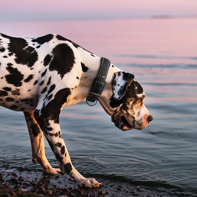 Fida Heavy Duty Dog Collar 1.5” Width, Ultra Soft Neoprene Padded, Adjustable Reflective Nylon Pet Collar with Two Metal Pin Belt Buckle for Large/X-Large Breeds (XL, Black)