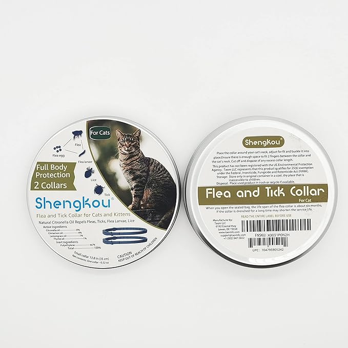Flea and Tick Collar for Cats, Natural Plant-Based Ingredients for Treatment and Prevention, Safe and Waterproof, with Free Flea Comb, Tick Tweezer, and Treatment Prevention Drops, 13.8 in (2 Packs)