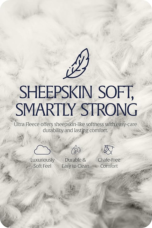 - ✅ All Ultra Fleece products have the softness and feel of genuine sheep skin but the durability and easy care properties of synthetic fibers
