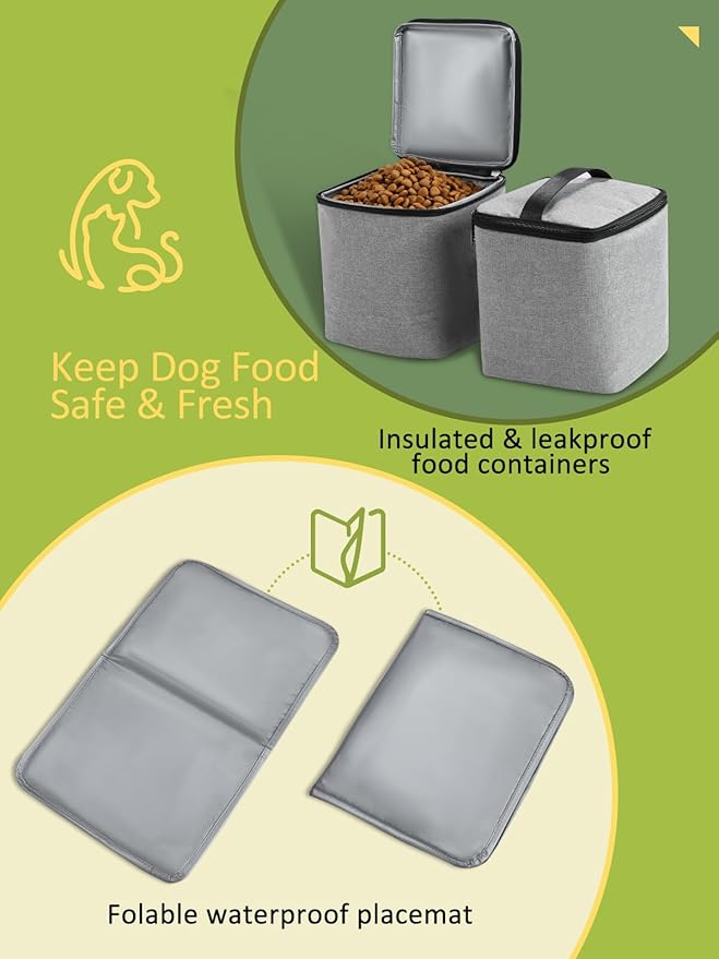- Keep Dog Food Fresh: Two large dog food containers can hold up to a weekโs worth of food depending on the dog. And the food carriers are fully insulated and leak-proof, keeping your poochโs food/treats fresh and safe no matter where you go, on a hillside or the beach.