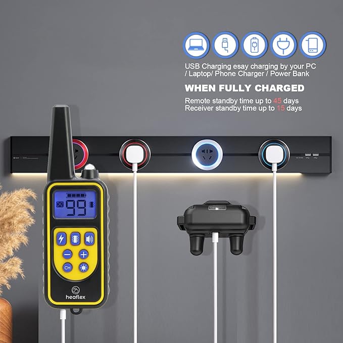 - Waterproof and Rechargeable Collar: Train 2 dogs simultaneously with IP67 Dog Training Collars. Rechargeable remote and receiver can be charged together via USB. NOTE: Please do keep the receiver in water for long time, remote control is not waterproof