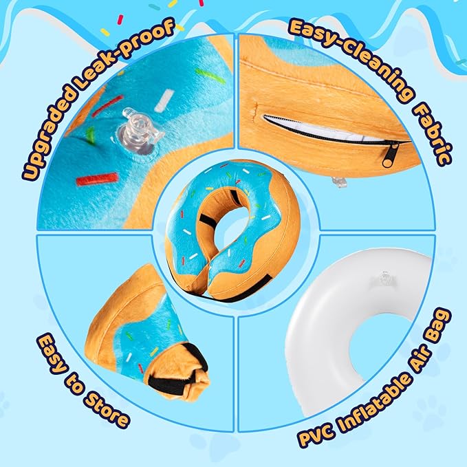 - Prevents Overlicking: This inflatable cone works like a plump barrier around your pet's neck, which can effectively prevent your pets from biting and licking injured or surgical site and promote recovering from surgery or wounds.
