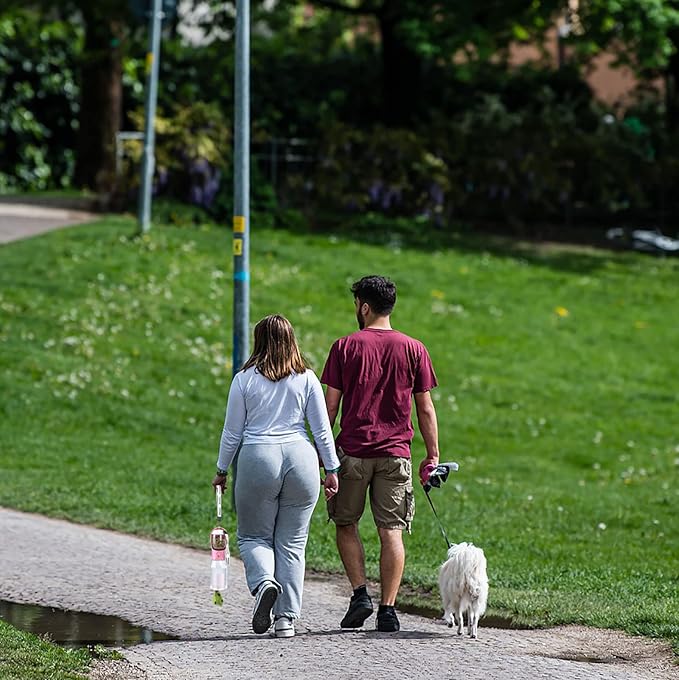 - Optional Colors Sizes & Poop Bag Holder: There are multiple fashion colors and 3 sizes(10oz, 15oz and 20oz). Inner poop bag holder is designed in the bottom of bottle, pull the poop bag out through the gap on the bottom when first use
