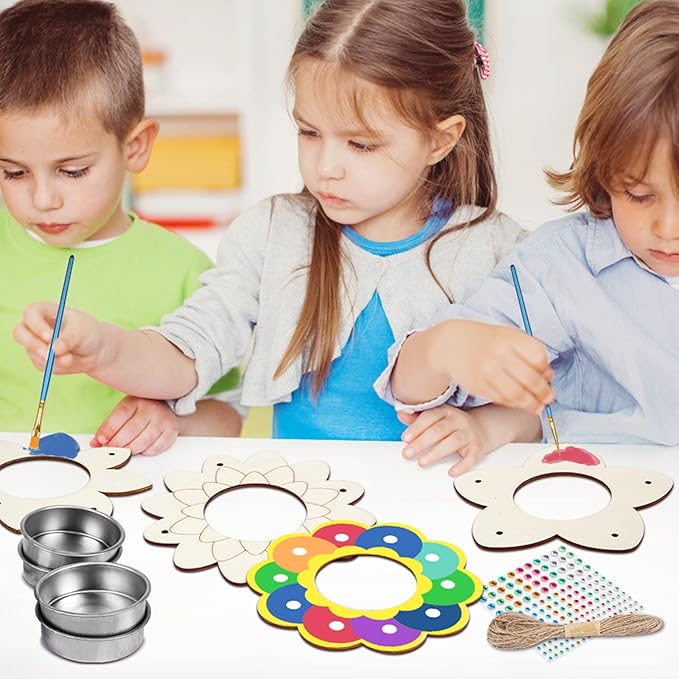 - Craft Project For Kids: Design and color the flower-shaped wood chips can stimulate children's creativity and hands-on ability, and improve children's hand-eye coordination. The process of parents accompanying their children to do handicrafts can also enhance the parent-child relationship.By making bird feeders, children can learn about animals and nature.