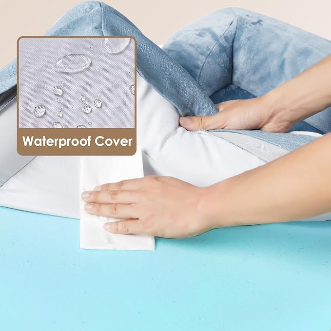 EHEYCIGA Orthopedic Dog Beds for Large Dogs, Waterproof Memory Foam Large Dog Bed with Sides, Non-Slip Bottom and Egg-Crate Foam Pet Couch Bed with Washable Removable Cover, Washed Blue