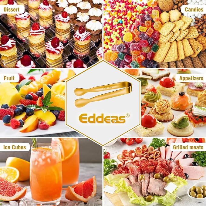 - MULTIPURPOSE -These gold serving tongs are great kitchen utensils for sugar cube, ice cube, candy, lemon slice, jelly, cookie, marshmallows, cheese, crescent rolls, hashbrowns, bacon or pickles, etc.