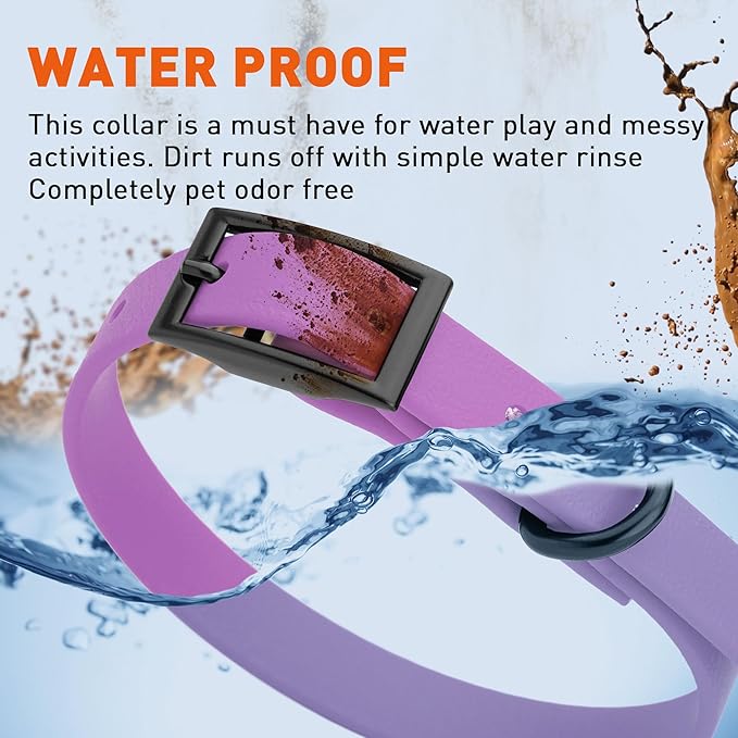 Dogline Biothane Waterproof Dog Collar Strong Coated Nylon Webbing with Black Hardware Odor- Proof for Easy Care Easy to Clean High Performance Fits Small Medium or Large Dogs, Amethyst Purple
