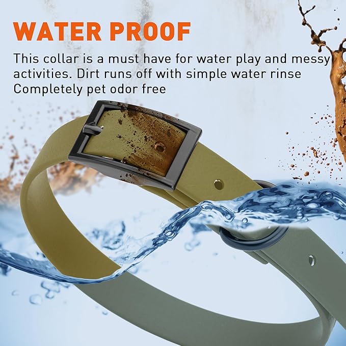 • Free Your Dog to romp in puddles and retrieve from lakes with the Dogline Biothane Waterproof Dog Collar. This water-repellent collar stays dry and odor-free, without shrinking or losing flexibility.
