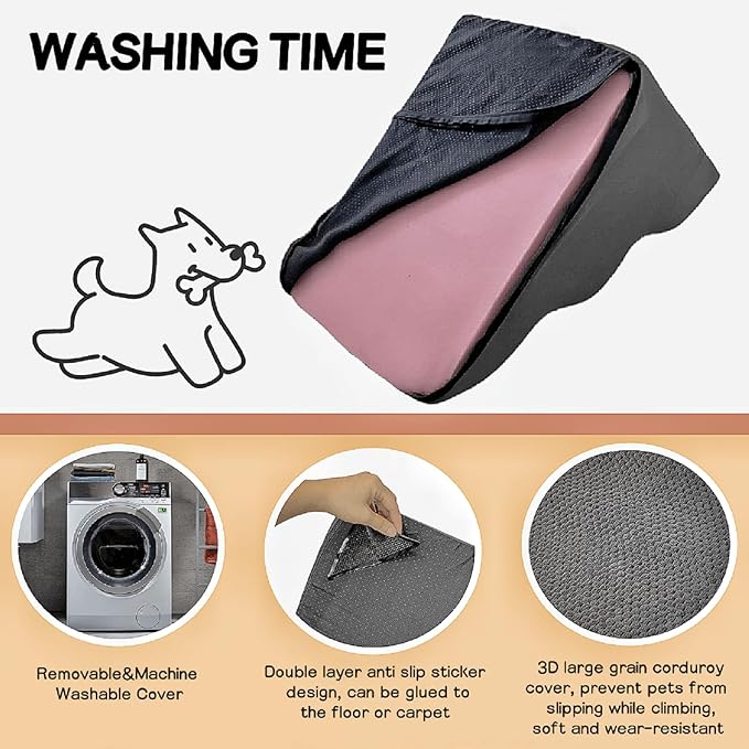 - 【Grey washable cover & safe sturdy dog steps】: Dog steps washable cover is made of comfortable materials and zippers where pet safety is a priority. Dog and cat pet stairs using 30D high-density lightweight foam waterproof, dog ramp can quickly rebound. dogs under 55 pounds to climb the stairs to the bed/sofa/couch provides an ideal mobile solution, stable and not easy to deformation, good support, easy to carry and change positions, do not worry about bump, protect the safety of pets