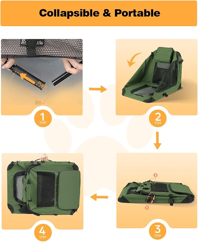 - 【2 Storage Pockets & 2 Portable Handles】The soft sided dog crate has side and top pockets to store essentials such as snacks and toys. The collapsible dog crate is easy to carry with the side handles, making it perfect for travel, transportation and daily walks.