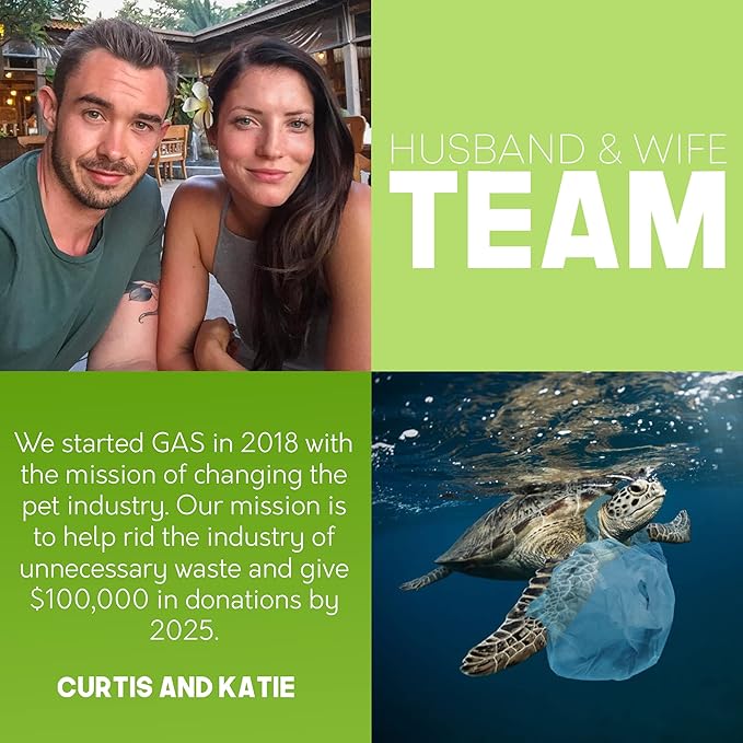 - SMALL BUSINESS WITH A BIG HEART - Founded in 2018 by Curtis and Katie, a dynamic husband and wife duo, G.A.S is not just our business - it's our passion. Dedicated to revolutionizing the pet industry, our small team is big on making a positive impact on the planet and helping animals in need. It's our mission to rescue 100,000 animals before the end of 2026.