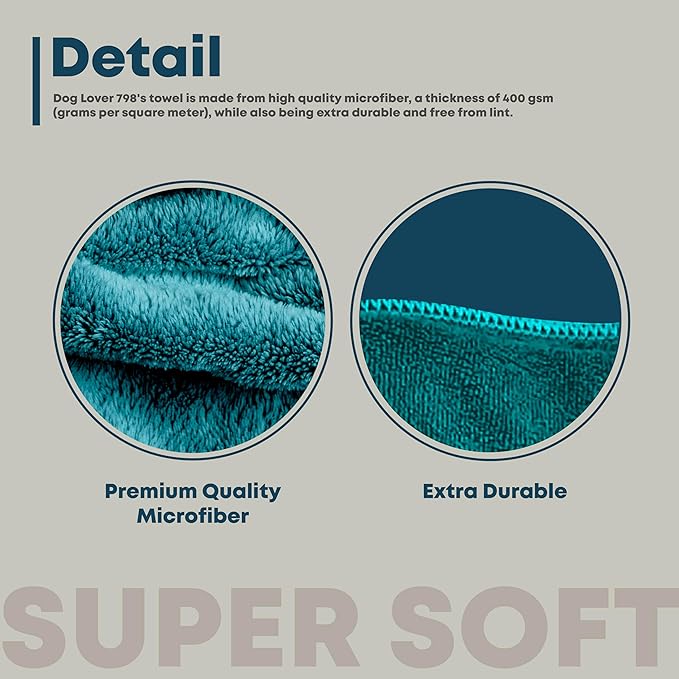 - SOFT & DURABLE: Made from high-quality, elastic terry microfiber that's 400gsm thick, this pet-friendly dog towel is both soft and durable. It provides a smooth and soft towel material, making it suitable for pets of any size or breed whether it's a large or small size dog, a long or short haired dog, a curly or straight haired dog.