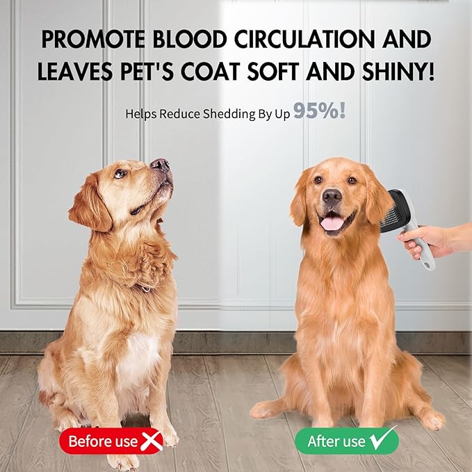 - Easy-to-Use Self-Cleaning Design: Effortlessly remove loose pet hair with the push of a button. Our brush features retractable pins for easy cleaning, ensuring no more loose hair floating around. Great for indoor use.