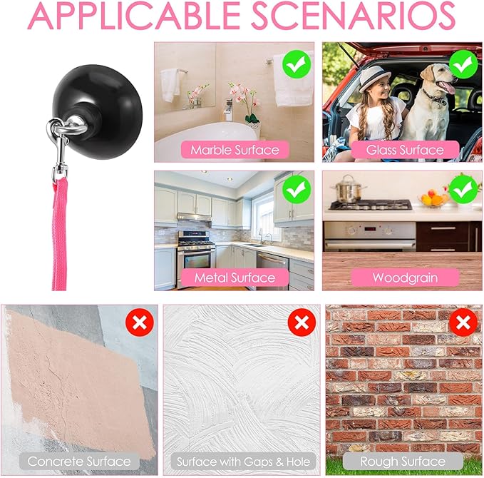 - Easy to use: the dog bathing suction cup tether can be firmly attached to the wall or bath tub, not easy to fall off, suitable for attaching to smooth surfaces without bumps, such as tiles, glass, smooth metal surfaces and so on