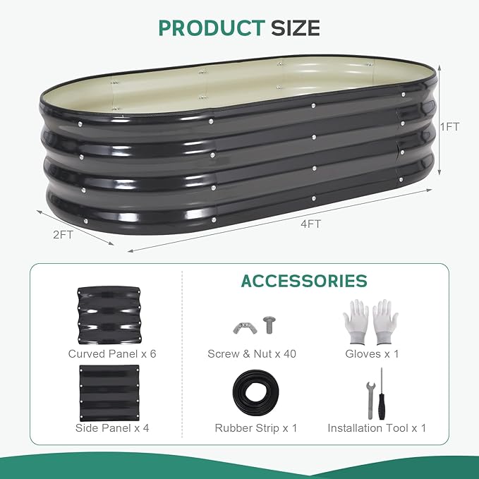 - 【 Easy Assembly 】Our metal raised garden bed is simple and easy to install. According to the detailed instructions and installation tools we provide, you can easily assemble your garden box and start planting with just a few simple steps and little time.