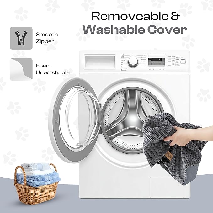 - Fully Washable Cover – Soft upholstery zip cover slips off for machine wash; breathable velvet tread grips paws even when wet.