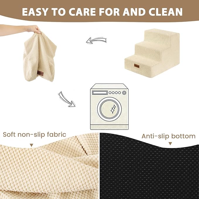 Dog Stairs for Small Dogs & Cats, 3-Step Non-Slip Pet Steps for Couch Sofa and Chair, Beige, 13.6" H
