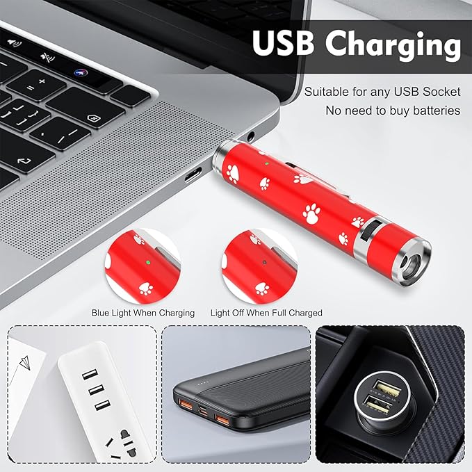 - Multi-Mode Interactive Toy: The cat toy has three modes: red, purple, and white. The red mode is suitable for playing and chasing with your pet, training your cat or dog's reaction and agility during the game. The violet mode is not only for detecting counterfeit bills, but also suitable for Observing your pet's health status. The white mode designed for emergency lighting at night is convenient for users to use it safely even in dark environment
