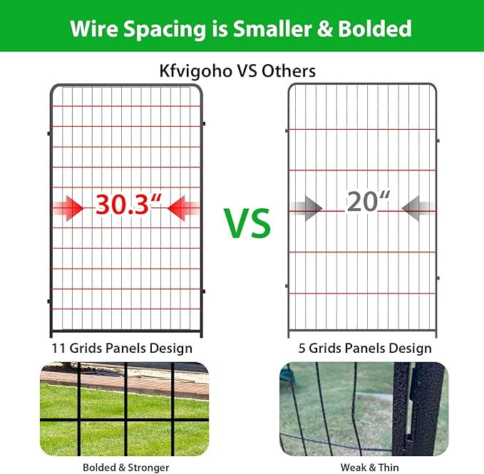 - 【Sturdy Structure & Stable Stakes】Kfvigoho metal stakes are designed round top, which can be pounded into the ground for greater stability, this dog fence with sturdy structure, so dogs can't knock it down and keep them confined in a safe area, the pet pen works great for small, medium and large dogs and rabbits, ducks, turtles etc