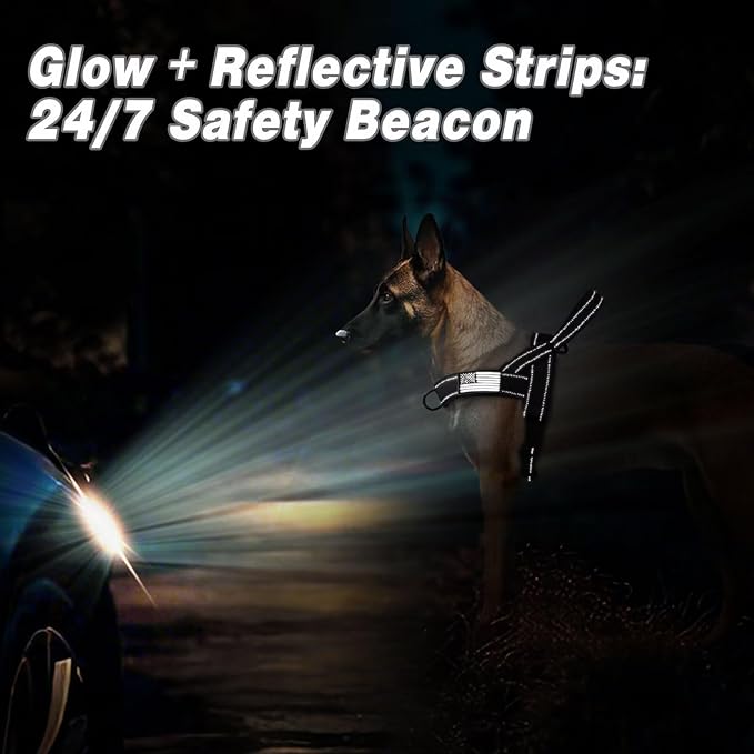 - Reflective Safety: Equipped with reflective strips, the no pull dog harness enhances pet safety during nighttime walks.Large O-ring,quick release buckle and soft padded handle all provide great help for you during daily walking or training exercises