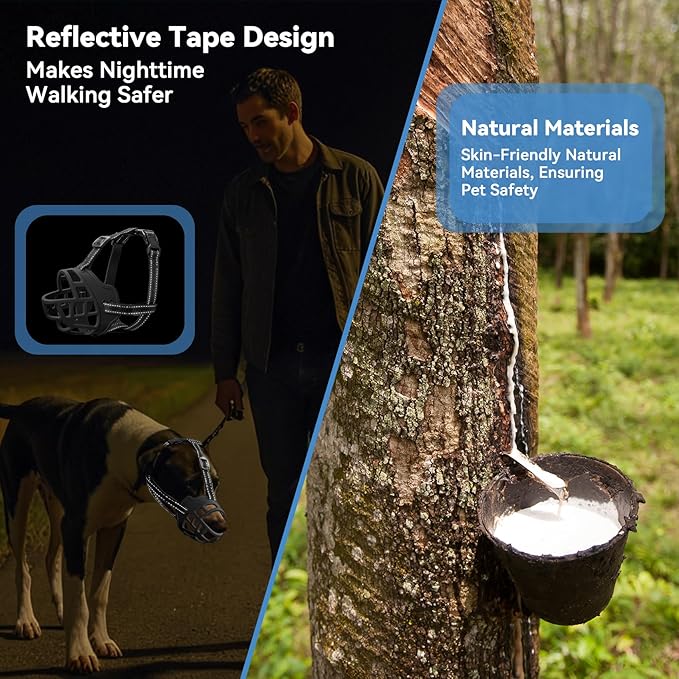 - Eco-Friendly Material for Safety and Durability: Our Dog Muzzle for Large Dogs is Crafted from Non-toxic, Environmentally Friendly TPR Silicone. This Lightweight yet Durable Material Is Odorless, Soft to the Touch, And Sturdy Enough to Resist Deformation, Ensuring Long-Lasting Use While Prioritizing Your Petβs Safety