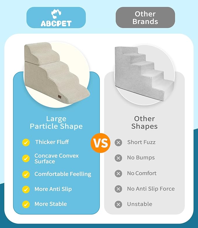 - Stronger Grip Anti-slip- The surface of this dog steps is made of larger fluffy particles. Stronger grip help your pet climbing to high bed or other surface, easily and safely. Combined with antislip bottom, this dog stair maintain stability during pet rushing to prevent pets from slipping.