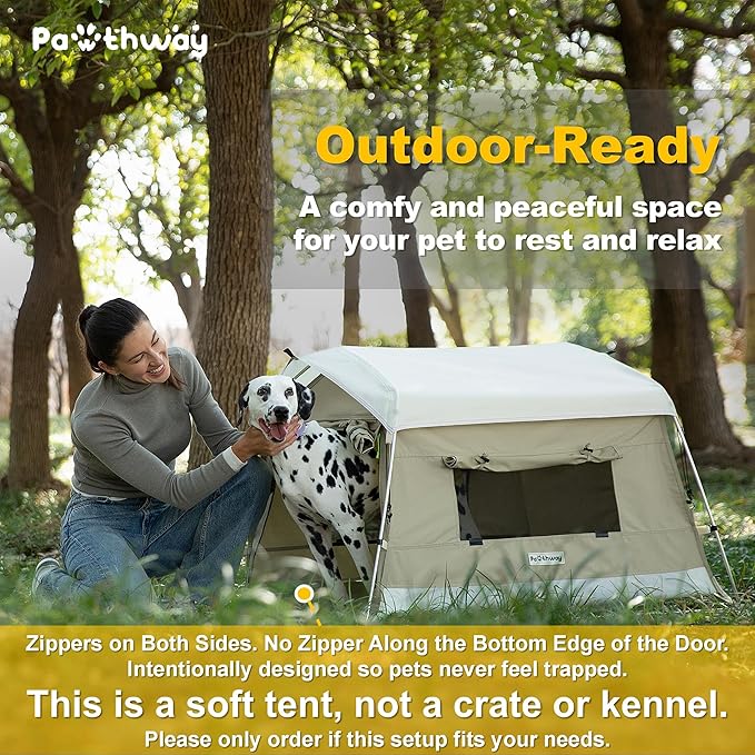 - This Is a Soft Tent, Not a Crate or Kennel: The door zips on both sides, with no zipper along the bottom edgeβso your pet can rest or hide without feeling trapped or stressed. This is an intentional design, not a flaw. Do not leave your pet unattended inside the tent, especially in outdoor or unfamiliar settings. Please only order if this setup fits your needs.