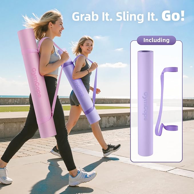 - [Portable & Lightweight – Rolls Tight, Goes Anywhere] Weighing only 2.65lbs, this mat rolls up compactly and comes with an adjustable shoulder carry strap for grab-and-go convenience. Take it to the gym, studio, or outdoors—wherever you roll, it follows.