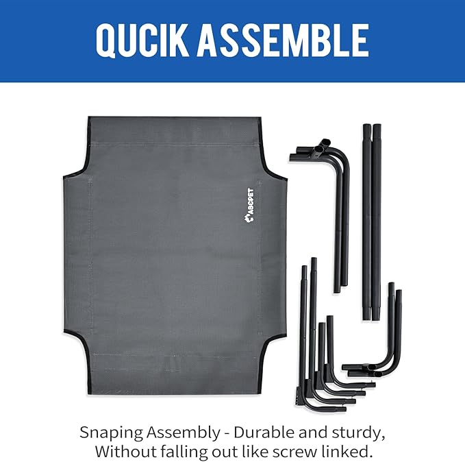 Elevated Dog Bed, Outdoor Dog Bed Large Raised Cooling Pet Beds Cots Waterproof Stable and Easy Assembly, Teslin Fabric with 1.2mm Thick Iron Frame, Breathable, Ultra-Sturdy,Grey, 42”*28“*8”
