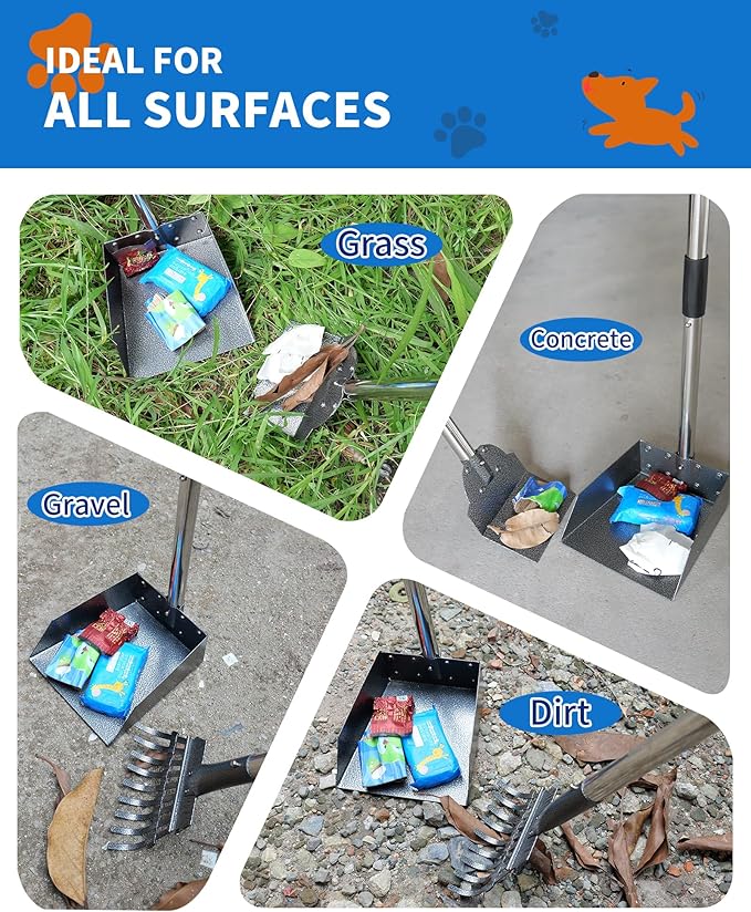 - 【Premium Metal Construction】Crafted with rust-proof metal and aluminum, this dog poop scooper features rust-resistant and deformation. Built to last through all seasons, it’s the perfect pooper scooper for dog waste cleanup. Perfect for small, medium or large dogs.