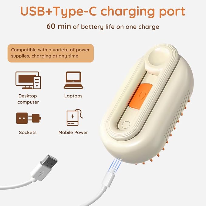 - [Long-Lasting Battery Life, Groom Anytime, Anywhere] With a built-in long-lasting battery, a single charge lasts up to a week. Whether for daily grooming at home or urgent needs during travel, the GKZ Cat Brush & Cat Steam Brush is the ideal choice for pet grooming. Keep your pet in top condition whenever and wherever, enjoying health and happiness.