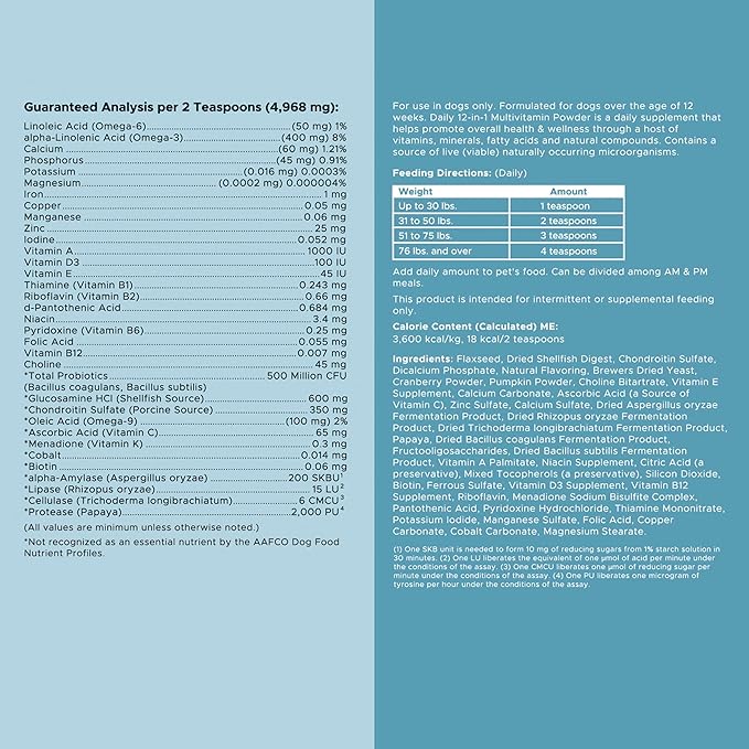 12-in-1 Multivitamin Powder for Dogs - 5.4 oz of Puppy and Senior Dog Vitamins and Supplements - Advanced Formula with Glucosamine, Omega 3,6,9, Vitamins, Probiotics, and More - Made in The USA