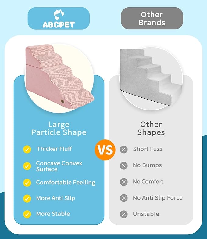 - Stronger Grip Anti-slip- The surface of this dog steps is made of larger fluffy particles. Stronger grip help your pet climbing to high bed or other surface, easily and safely. Combined with antislip bottom, this dog stair maintain stability during pet rushing to prevent pets from slipping
