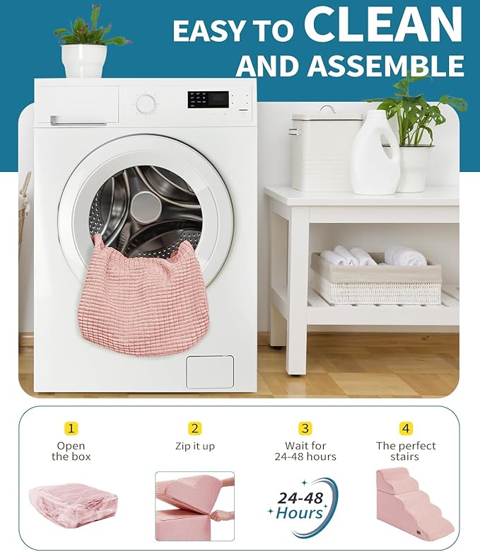 - Easy to Clean - The dog stairs feature a removable, machine washable cover for effortless cleaning. Using without assemble, our pet stairs provide a safe and convenient way for your furry friend to access higher surfaces without the risk of injury or strain on their joints