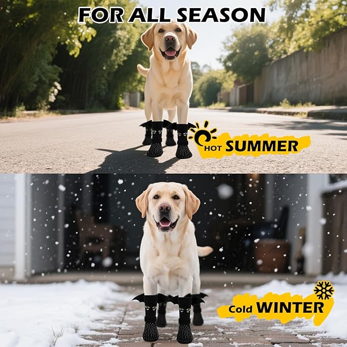 EXPAWLORER Halloween Anti Slip Dog Socks to Prevent Licking Paws, Boots & Paw Protectors with Grippers,Doggie Booties for Hardwood Floors for Small Medium Large Senior Dogs Costume Black Devil Wings L