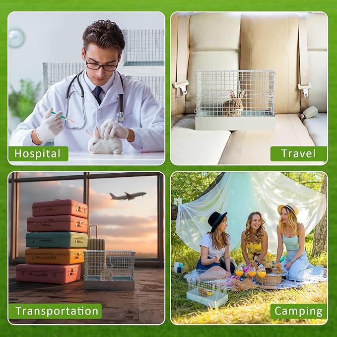 - Easy Transport with Carry Handles: designed for both short trips and extended outings, this bunny transport cage comes with sturdy handles on both sides for effortless carrying. Remove the divider to create a larger shared space when transporting more than one rabbit at a time. Ideal for travel, vet visits, outdoor events, or even as a temporary indoor pen